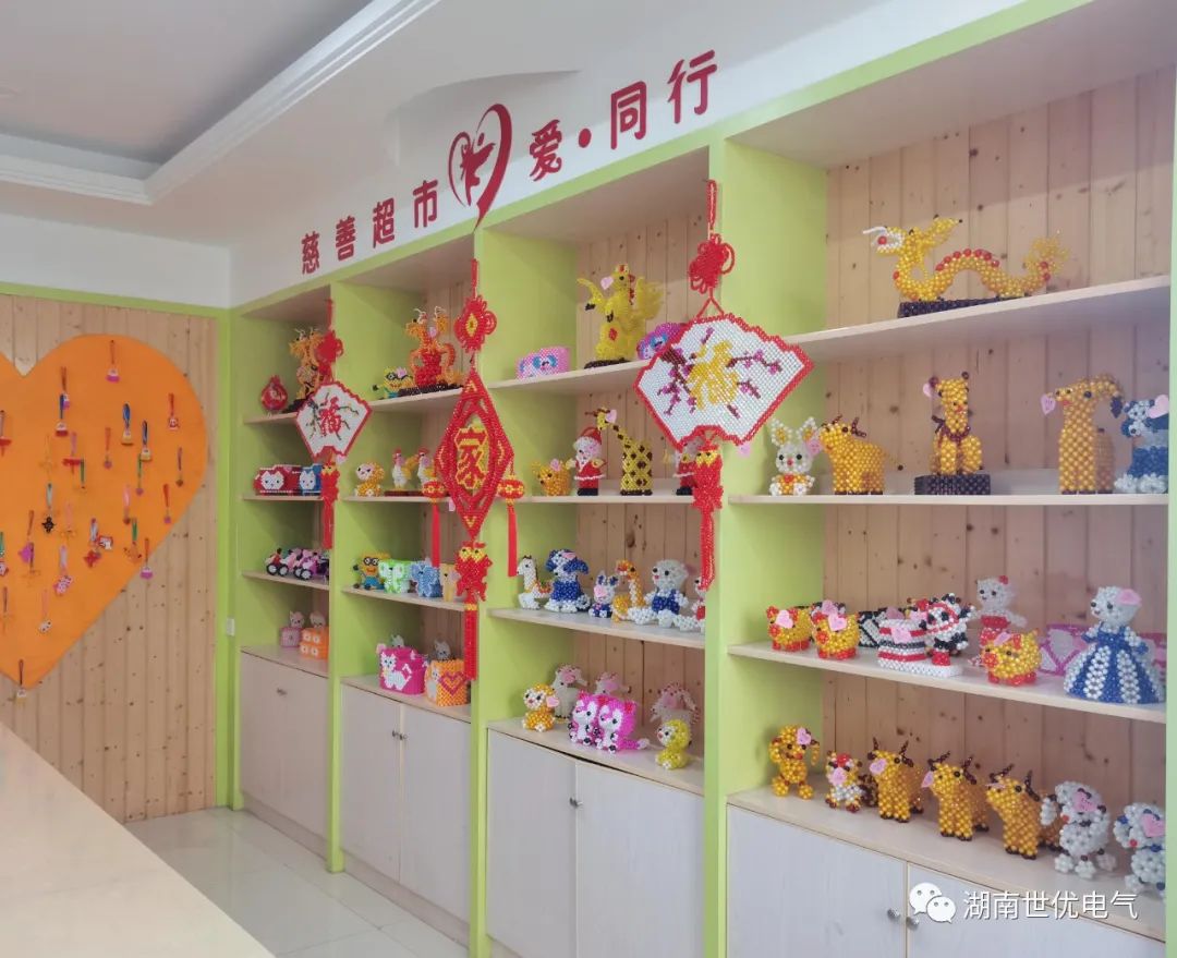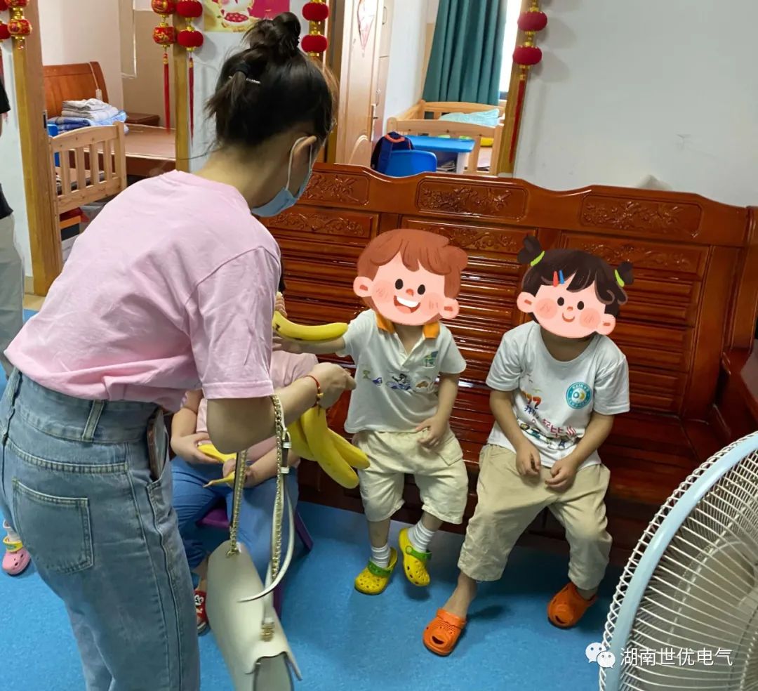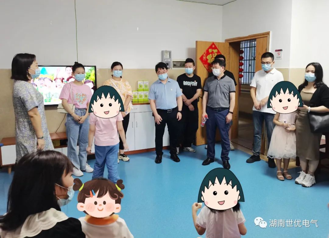 在慰問活動中,福利院劉勇院長首先帶領志愿者成員參觀福利院的活動室、教室、康復室等場所和設施,并詳細介紹了福利院的相關情況。福利院的兒童大多都是殘障兒童,很多孩子都不能正常學習生活,全靠福利院老師、治療師盡心盡力、無微不至地照顧??吹胶⒆觽冮_朗、熱情地和志愿者們打招呼,并且積極地向我們展示他們親手制作的手工藝品,志愿者們心中感到非常欣慰,并對福利院老師們?yōu)樘厥鈨和B(yǎng)育、教導、康復等工作的無私付出表達崇高的敬意。世優(yōu)電氣的黨員干部和志愿者們將慰問物資贈與福利院,并表示有機會還會發(fā)動更多的社會力量關愛這些兒童,讓他們能夠感受到社會大家庭的更多關愛。